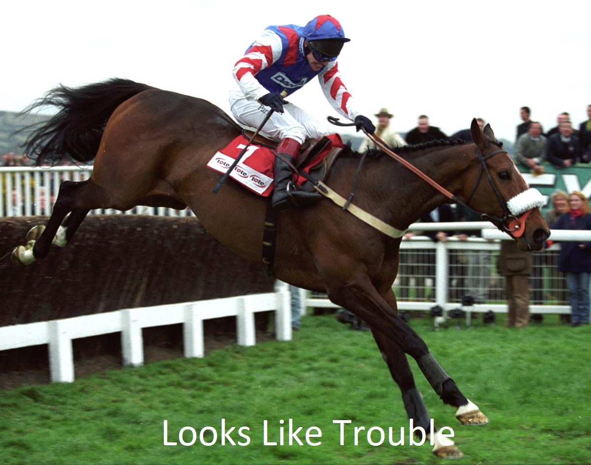 ![]() Sports Advisor First Paddock Report 6th December 1999 Sandown staged a fine two day card on the weekend and although lacking runners on the Friday there were some class acts on show. Looks Like Trouble trained by Noel Chance is the ‘Young Pretender’ for the Blue Riband at Cheltenham in March and his appearance before the Bovis Chase would have had his supporters in raptures. A sleek classy sort, to compare him with most other Chasers is to liken a Rolls Royce to a bunch of Dump Trucks. Although jumping big early on, he then honed his skills and jumped with efficiency as the race proceeded. He will take the world of beating in the King George at Kempton prior to a crack at the Big One. RFO 21st Dec 1999 Looks Like Trouble who has the potential to win this prestigious prize before going on to prove himself at the Cheltenham Festival. Noel Chance has a worthy successor to his Blue Riband victor Mr Mulligan in this Royal and Sun Alliance winner but whereas the former was a huge ‘orange thing’ Looks Like Trouble is a much sleeker version of a racehorse being a most attractive well made sort who would not look out of place at Royal Ascot. After finishing second in a maiden Point to Point in Ireland he ran fifth to Brother of Iris in his first foray over hurdles and failed to score before switching to the major obstacles. After a couple of hairy efforts he won his first race at Doncaster jumping well and confirmed his sure footedness by winning at Sandown before scoring at the Festival. His victory at Cheltenham was devalued by the fall of Nick Dundee but he beat the rest fair and square. Looks Like Trouble is a class act and can win well. RFO 11th Jan 2000 Over at Wincanton Looks Like Trouble will contest the John Bull Chase only if the ground is good. Heavy rain stopped him in his tracks in the King George and the Mole is still a big fan. If the going is on top the coffers will be divested in the Gold Cup for this superb individual. RFO 1st Feb 2000 The Mole is not one to let life’s slings and arrows get in the way of a good time but the festivities over the Christmas and Millennium were definitely dampened by the demise of Looks Like Trouble in the King George Chase at Kempton and a pall hung over the burrow. Post race reports filtered back to the roost that the horse “had not gone a yard” on the testing surface and that the run was best forgotten. While that view was backed up by assertions from trainer Noel Chance that the horse was sound in wind and limb, what was needed was a performance that left no doubts that the horse was fully functioning in all departments and this was confirmed in no uncertain terms on Saturday. At Cheltenham the son of Zaffaran made ample amends by winning in exhilarating fashion. Making all the running his fencing skills were simply breathtaking and for a while it looked as if he were preparing for the Champion Hurdle rather than the Gold Cup as he left seasoned chasers in his wake. Pilot Norman Williamson was modest enough to ascribe the fright at the last to jockey error as he wanted to play safe but the horse had other ideas and the hiccup was due to crossed wires between the pair. There will be no doubts when the dazzling duo come to the last in the Blue Riband itself. The column mentioned before the King George that this superb individual would not look out of place in the paddock at Royal Ascot and it was interesting to hear connections state that they thought he possessed more speed than Mr Mulligan. Rumour had it that there were some individuals prepared to pick holes in Saturday’s performance. If so let us hope the same souls have the bottle to back their opinion by laying the horse at the biggest price for the Gold Cup. Moley will be first in the queue. RFO 14th March 2000 You can forget the Olympics, the World Cup, the FA Cup, the Millennium Celebrations and Crufts, its Cheltenham week for Racing fans and the world can wait for the next three days. If looks could kill they probably will in the Cheltenham Gold Cup when the Noel Chance trained Looks Like Trouble attempts to conquer the last frontier on his programme. Doubts about the going being too soft have been put to rest and this outstanding looking individual can add to the emphatic victories gained over course and distance on his last two appearances at the venue. A winner of the Sun Alliance last year he has yet to get the full credit for that win and put a disappointing display in the King George behind him with an emphatic display of fencing in the Pillar Chase and again won by a distance which put him back in contention for the Blue Riband. Moley has never been tempted to scan beyond Looks Like Trouble this year and the champers is on ice in the burrow in expectation of a fine win Postscript I think I headlined this horse 4 times during the campaign leading up to his winning the Cheltenham Gold Cup. He looked like a Rolls Royce and won like one! |