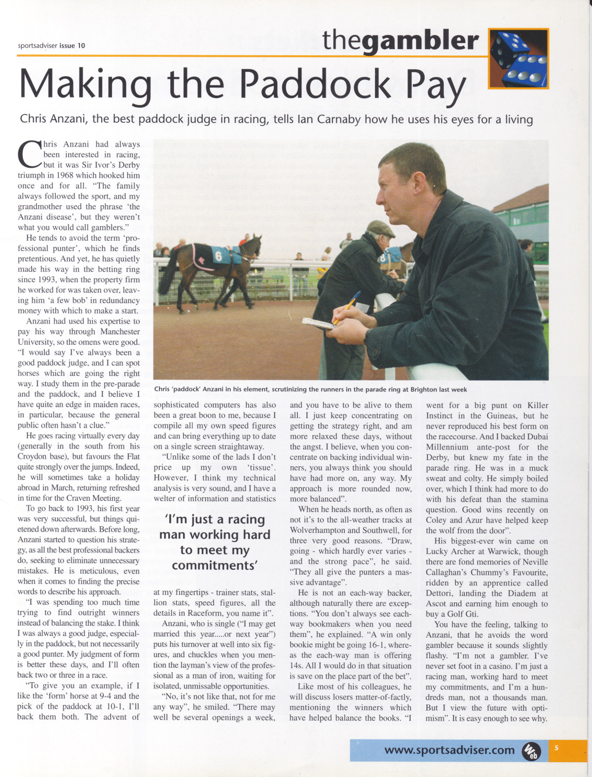 It is over twenty years since I started visiting the paddock at racecourses. As a professional punter I was always aware of the betting on living creatures, as opposed to betting on cards or in a casino, for example. Very early on I was impressed by certain horses and made forecasts to my friends and family.