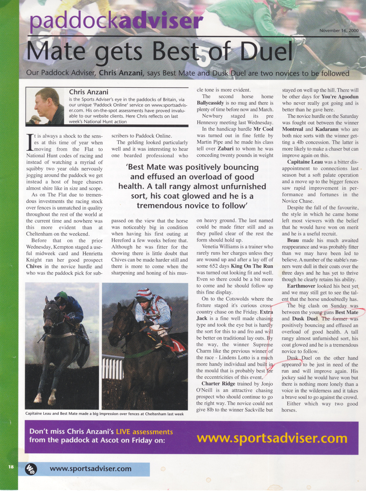 Sports Advisor 16/11/2000