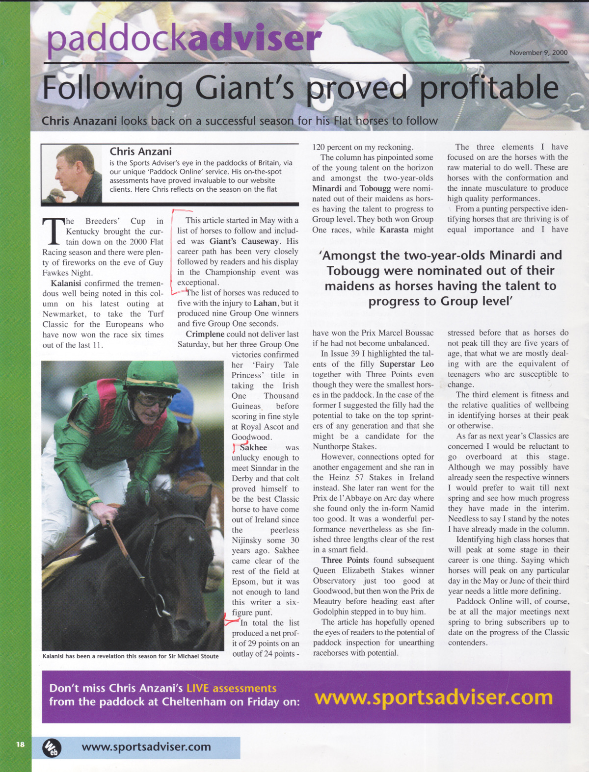 SportsAdvisor26/07/2001 — SportsAdvisor16/11/2000 — SportsAdvisor09/11/2000